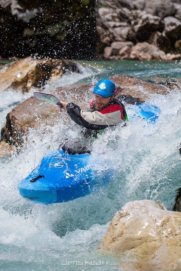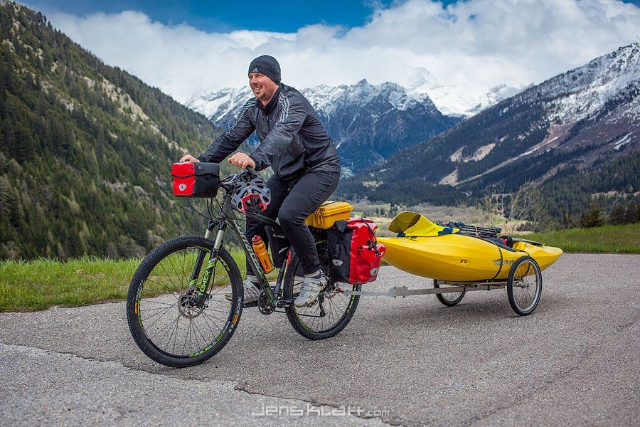 Mit einem Gesamtgewicht von 90 Kilogramm (inklusive Kajak, Ausrüstung und Camping-Utensilien) durchquert er legendäre Alpenpässe und paddelt auf Klassikern wie der Durance, dem Inn, der Soca oder der der Ötztaler Ache.