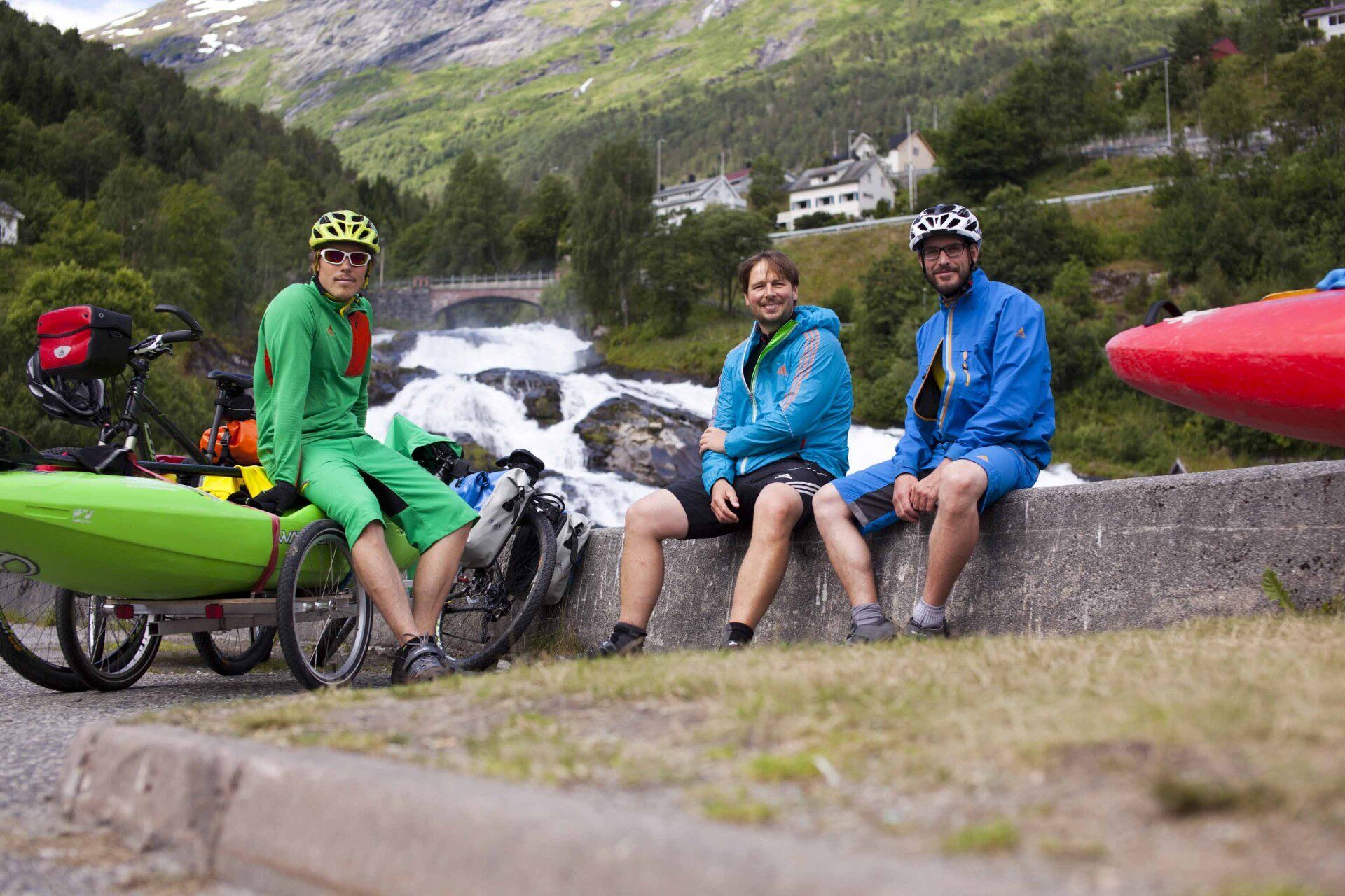 Norwegen statt Neuseeland, Fahrrad statt Flieger, Zelt statt Zimmer. Bei ihrer Tour durch das Fjordland in Norwegen reisten Olaf Obsommer, Jens Klatt und Philip Baues mit Fahrrad von Fluss zu Fluss – aus eigener Kraft und mit dem Kajak auf dem Anhänger. Diesmal stand nicht die Befahrung der höchsten Wasserfälle im Mittelpunkt, sondern die Reise selbst: die Landschaft, die Menschen und die Entdeckung der reduzierten Geschwindigkeit. „Live simply.“