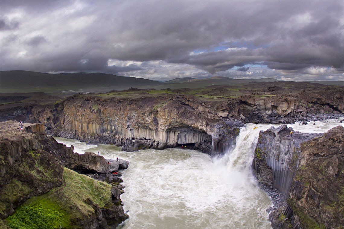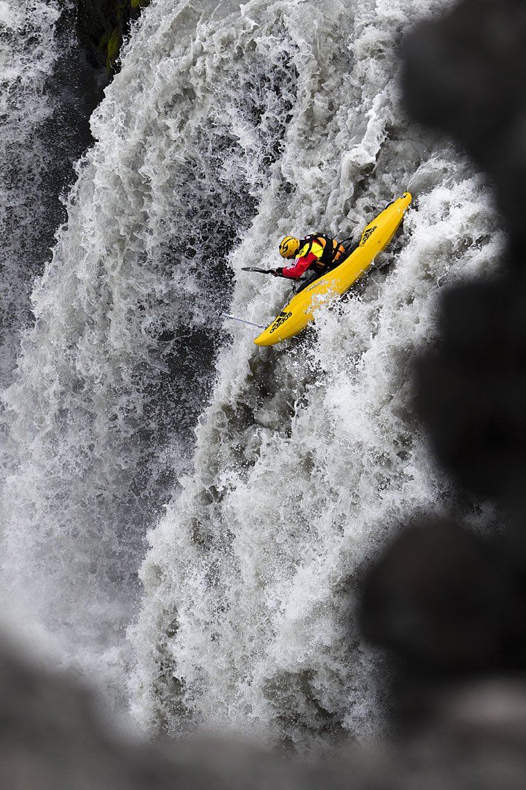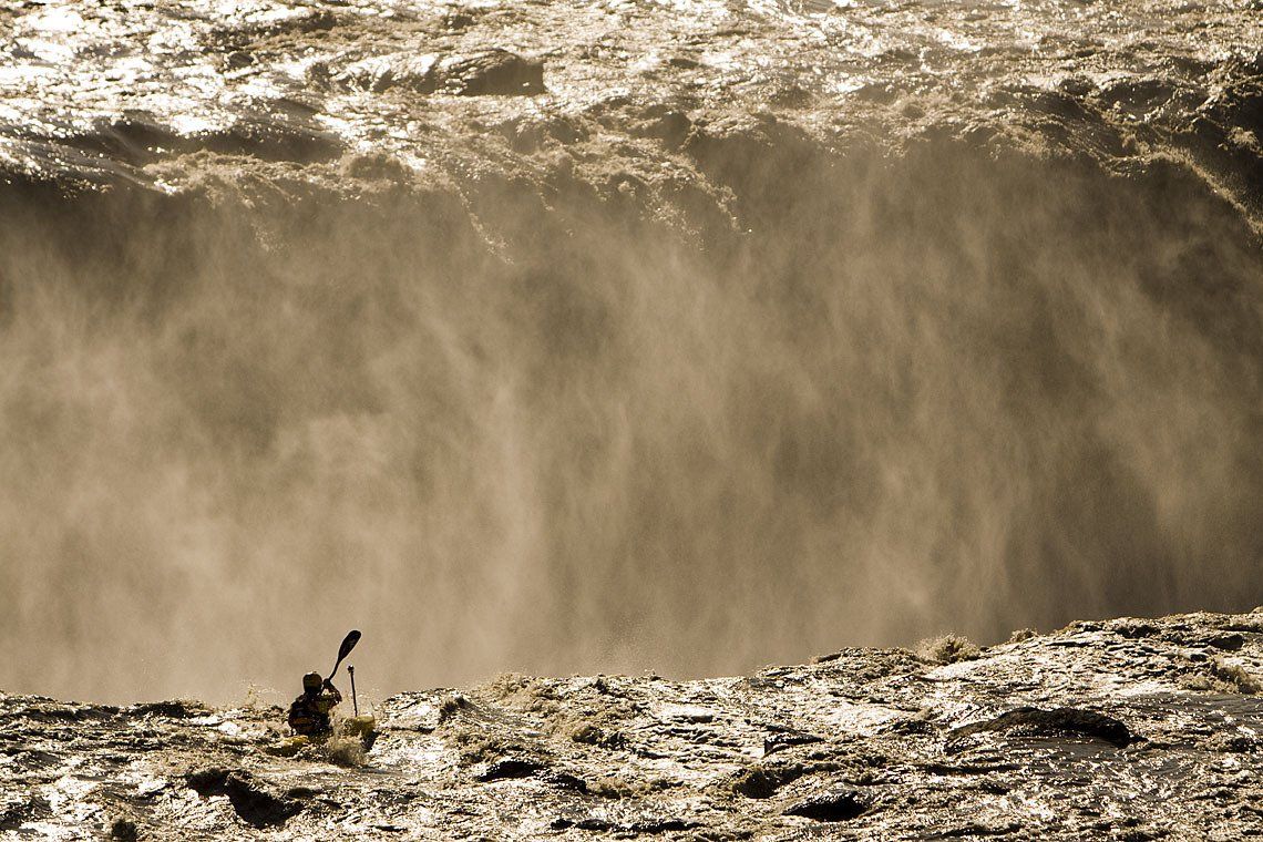 Philip Baues schildert seine Befahrung des 20m hohen Aldeyjar Wasserfall wie folgt: "Von der Locke eingepackt ging ich für die Kameras fast unsichtbar den Fall hinunter und wartete auf den Einschlag ... irgendwie blieb dieser allerdings aus. Es ging einfach direkt ein paar Stockwerke tiefer, wo meine Spritzdecke der Wasserwucht nicht widerstehen konnte und ich aus dem Boot gerissen wurde. Dann war es dunkel. Stockdunkel. Nach 13 langen Sekunden sah ich zum Glück wieder Licht und konnte fast unbeschadet ans Ufer schwimmen. Glück gehabt!"