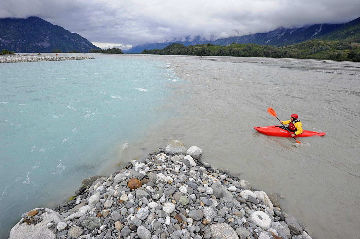 Für die Kajaker geht es mitten durch das alaskische Küstengebirge - an gewaltigen Bergen, Schluchten und Hängegletschern vorbei. Kurz vor der Küste fließt der Tatshenshini in den Alsek River – ein breiter und äußerst kalter Fluss mit treibenden Eisbergen, der in der "Dry Bay" schließlich in den Pazifik mündet. Von hier geht es per Buschflieger zurück in die Zivilisation.
