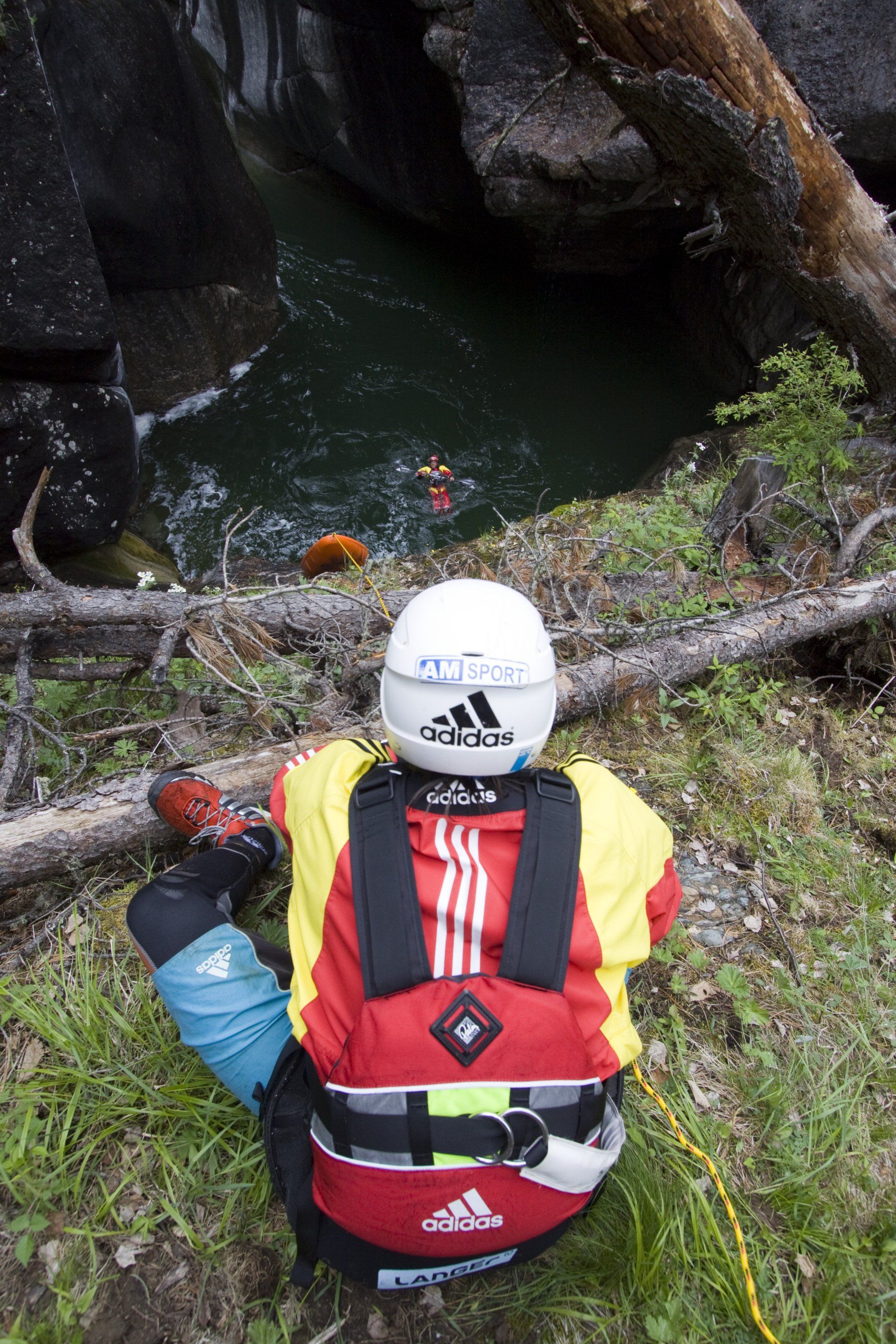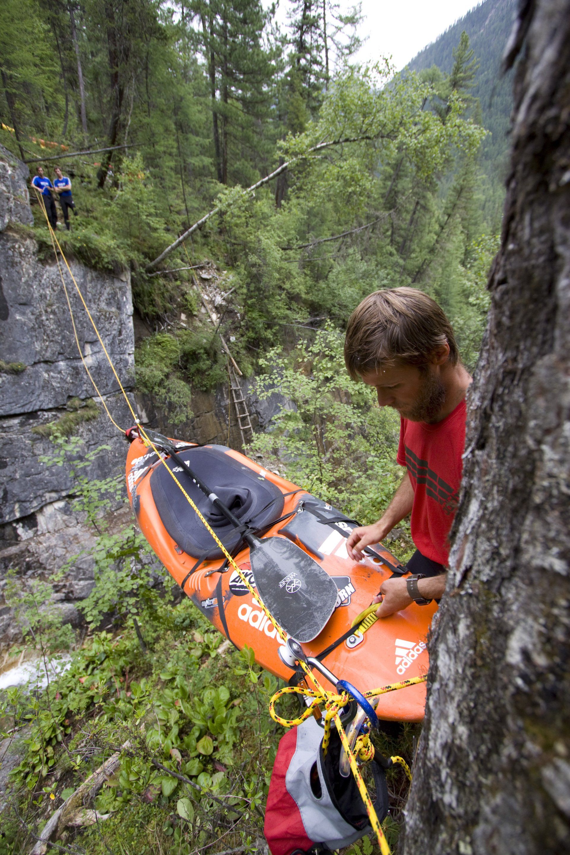 »Für sechs Kilometer Strecke beispielsweise war das Team einmal sieben Stunden unterwegs. Die Kajaks mussten dabei mehrfach abgeseilt oder per Seilbrücken über tiefe Schluchten transportiert werden«.
