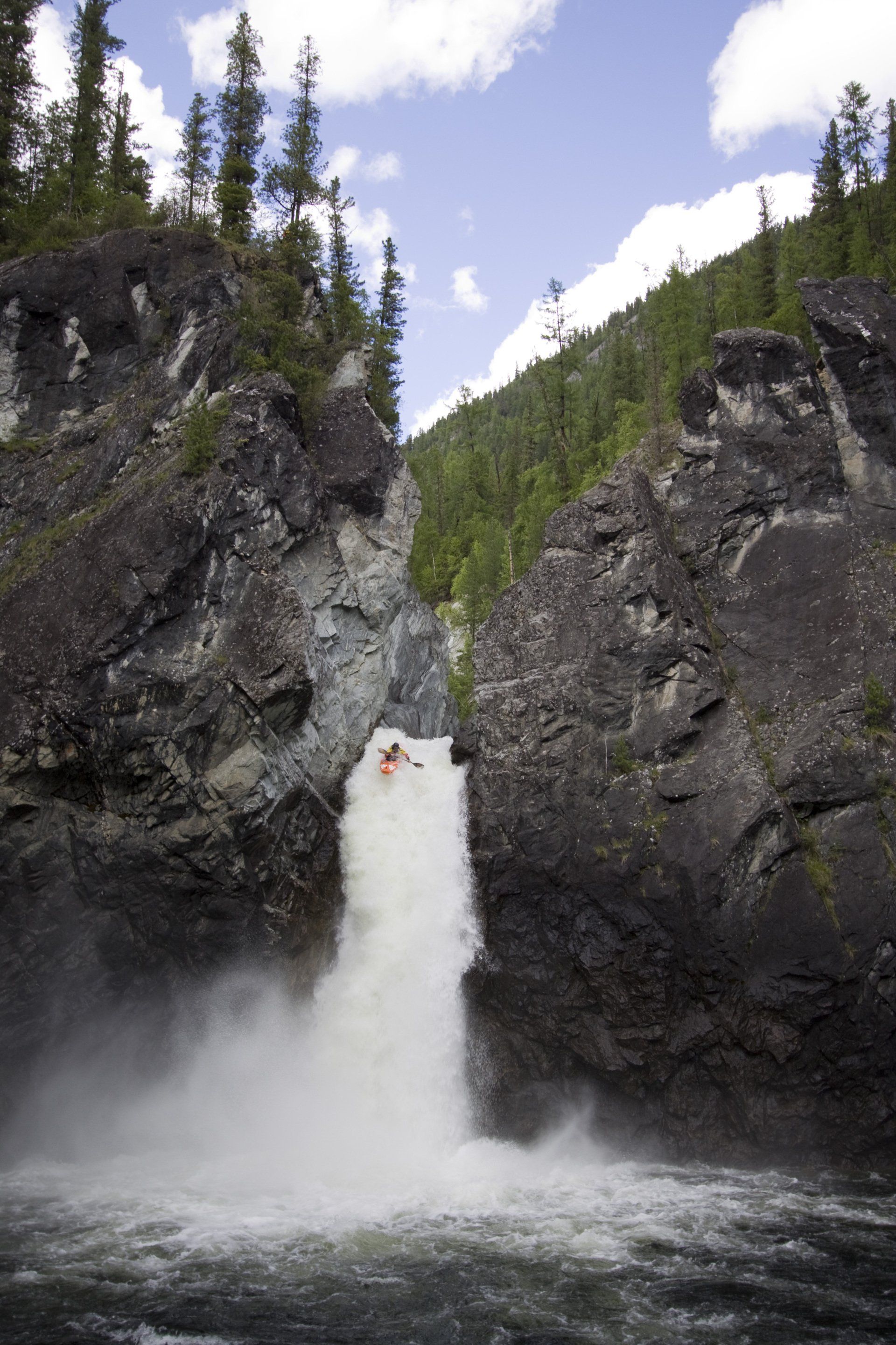16 Tage in Sibiriens Wildnis, fern ab jeder Zivilisation. Die gesamte Ausrüstung inklusive Kajaks (40KG) musste vor einer Befahrung aus eigener Kraft die Flusstäler hinauf geschleppt werden. Höhenunterschiede von bis zu 400 m und Marschzeiten bis zu 3 Tage forderten das Team. »Abends hätte ich mich immer vor Freude auspeitschen können«, kommentiert Olaf die Herausforderung mit sich selbst.