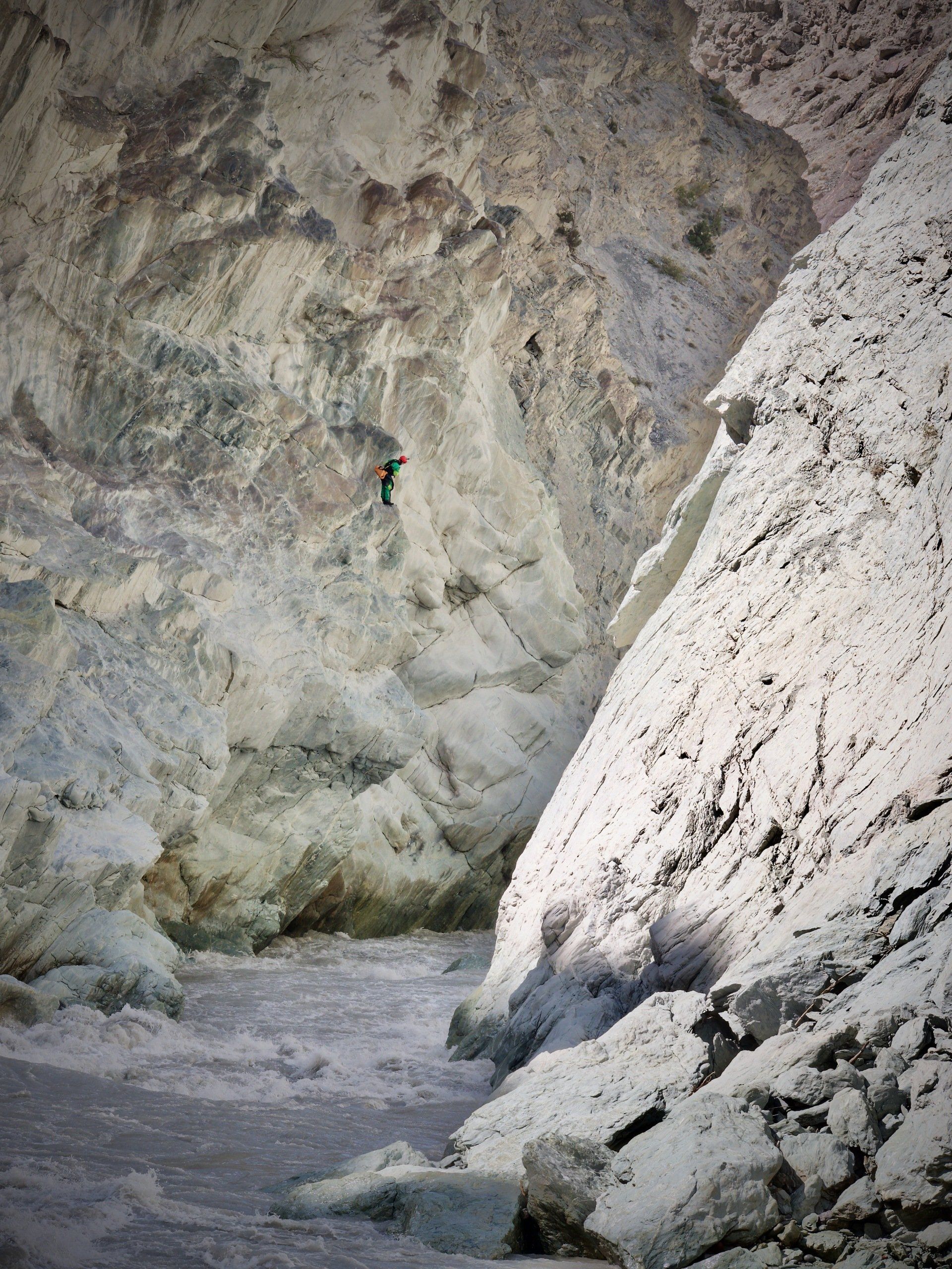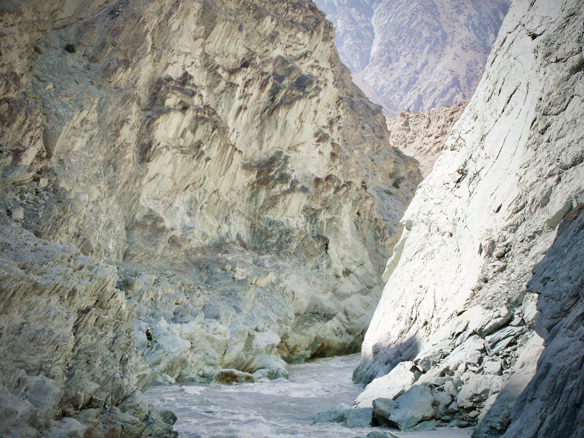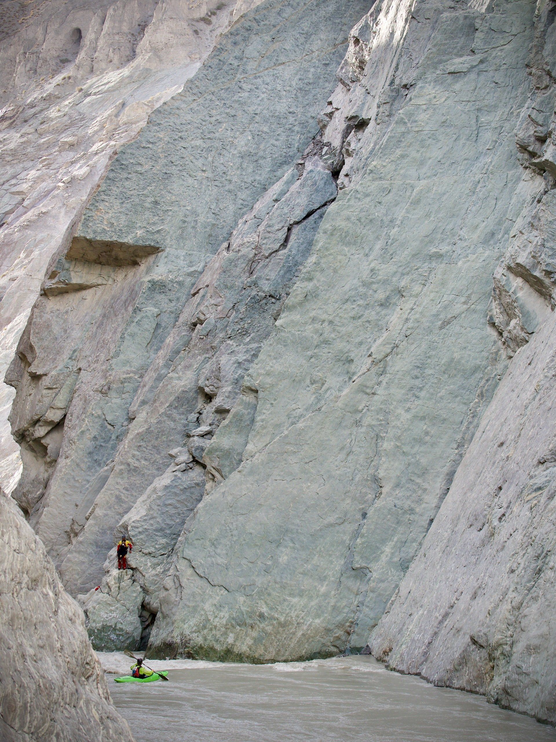 Dem Team um Olaf Obsommer fehlte von dieser legendären Liste nur noch der Muksu im Pamirgebirge. Um zum Einstieg zu gelangen, musste das Expeditionsteam die Kajaks samt Ausrüstung 40 Kilometer auf fast 5000 Meter Höhe tragen. Dünne Luft herrschte auch noch an der Einsatzstelle – auf 4000 Metern über dem Meer. Einmal in die tiefe Schlucht eingetaucht gibt es kein Zurück. Der einzige Weg aus dem beeindruckenden Gebirge führt durch die 88 Kilometer langen Schluchten des Muksu – eingerahmt von zahlreichen 7000ern.