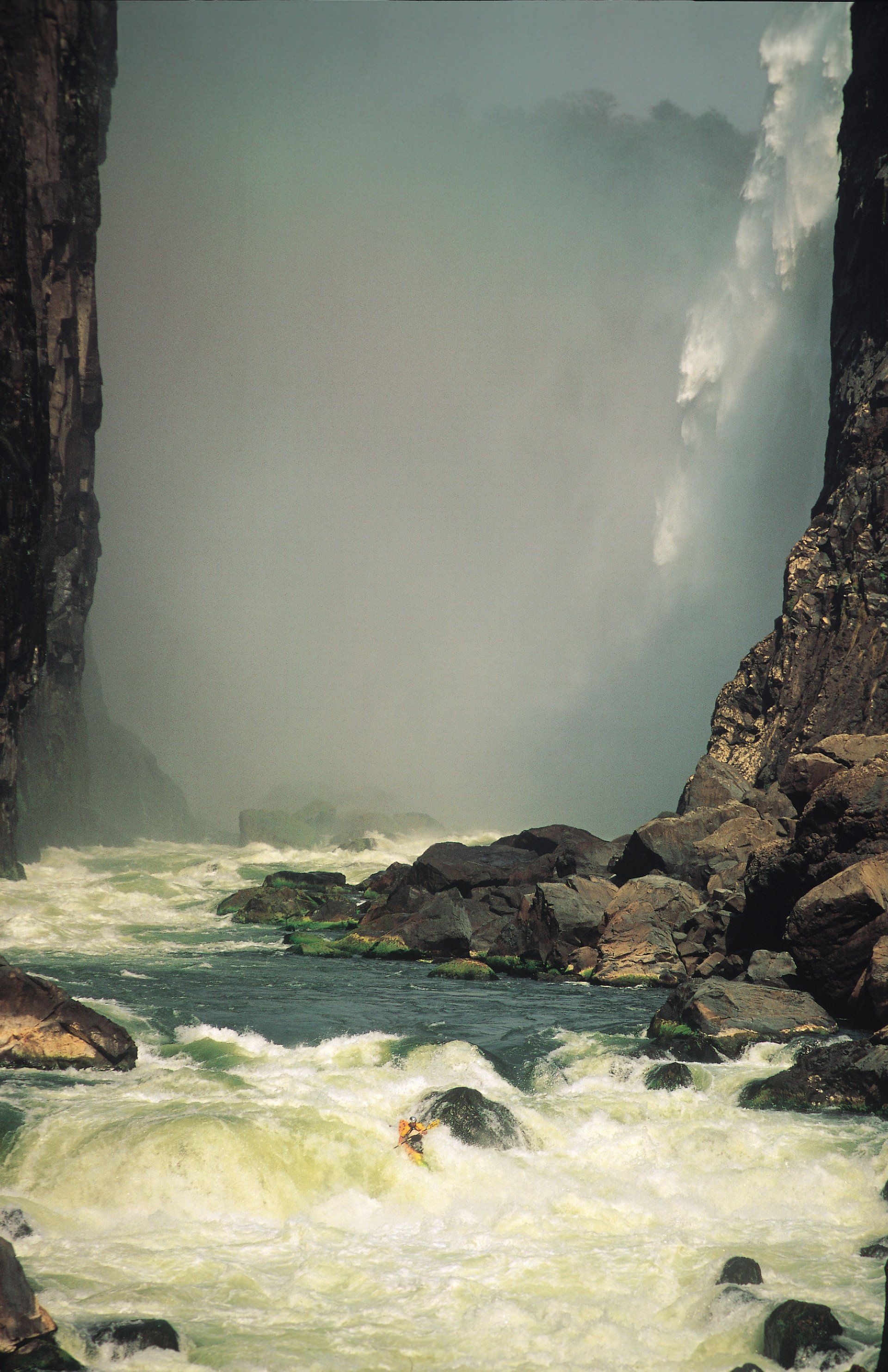 Der Zambesi ist der viertgrößte Strom Afrikas (2736 Km). Er entspringt im Norden Zambias zu Namibia und Simbabwe, bevor er in Mosambik den Indischen Ozean erreicht. Während Ober- und Unterlauf größtenteils Flachwasser sind, beginnt direkt unterhalb der ViIktoriafälle (1700m breit und 108m hoch) eine 120 Km lange Wildwasserstrecke mit wuchtigen Katarakten im obersten Schwierigkeitsgrad. Dort sind Olaf Obsommer und sein Team mit ihren Kajaks eingebootet, um die Geheimnisse der berüchtigten Zambesischlucht auf Film einzufangen. Sie konnten eindrucksvolle Aufnahmen mitbringen und beweisen das der Zambesi ein Wildwasser Eldorado ist, welches von jedem Paddler mit WW IV-Führereschein, einer Portion Mut und 100%iger Rolle bezwungen werden kann.